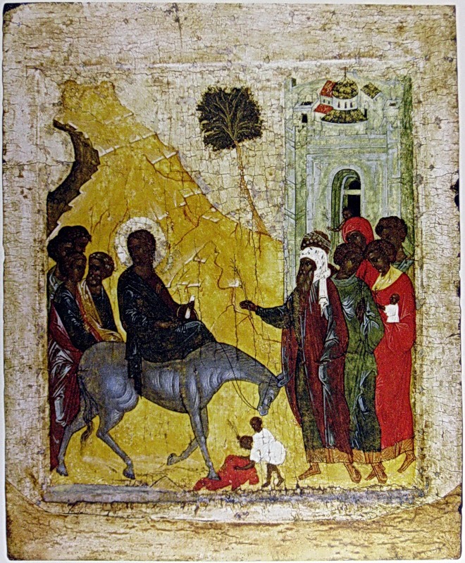 Грусть… Оттого, что радуются люди не Царю Небесному, а царю земному и одежды постилают перед Ним, что волнует их благо земное – освобождение от римского рабства, от нужды и бедности. И их несложно понять нам, ведь и в наше время происходит то же самое – большинство людей стремятся к хорошей комфортной обеспеченной жизни. И, даже придя в Церковь, мы испытываем надежду на благополучие на земле и часто не можем принять скорби и нужду без отчаяния и обиды на Господа. Так и тогда уставший народ жаждет счастья и свободы на земле. Они не осознают, что Иисус Христос – Царь Небесный, и ради них и нас Он принес себя в жертву, чтобы мы могли обрести истинное счастье и свободу от смерти. Поэтому Господь испытывал глубокую грусть и в то же время безграничную любовь к людям.