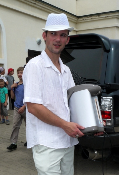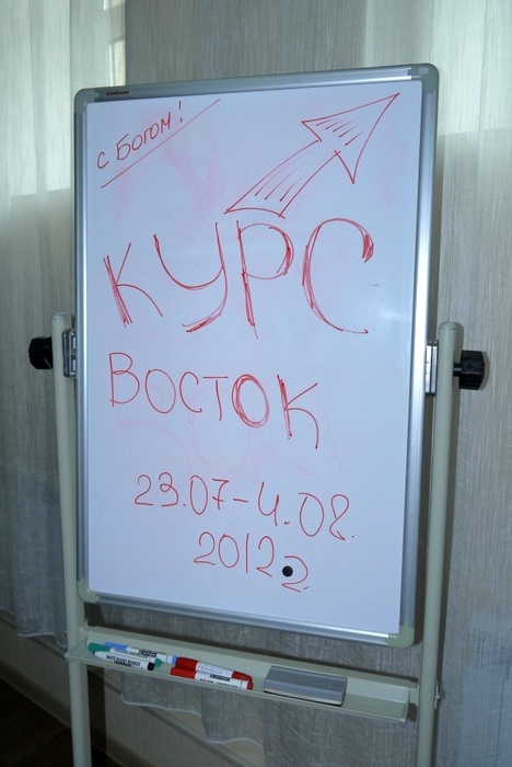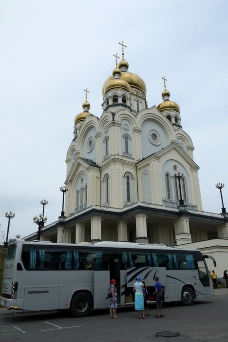 Отправление смены подросткового лагеря Хабаровской епархии "Курс-Восток" от Спасо-Преображенского кафедрального собора. 23 июля 2012г.