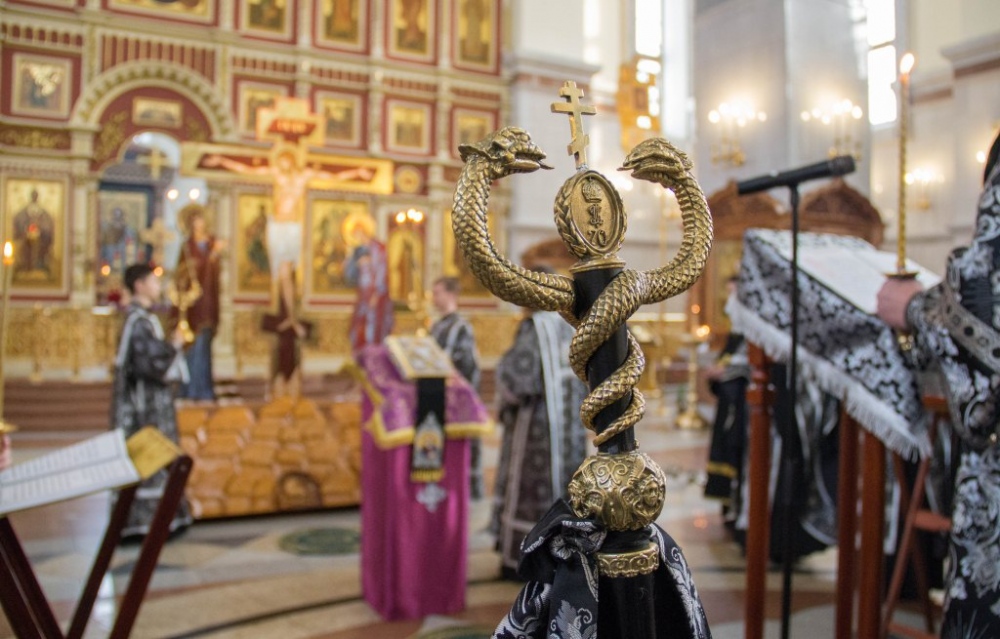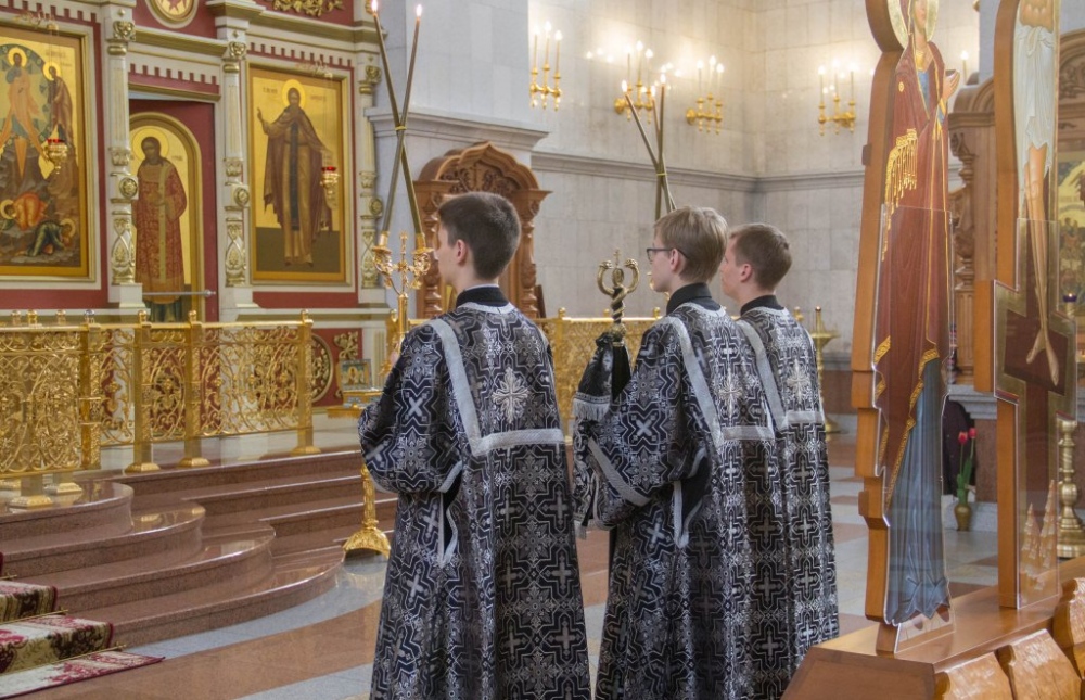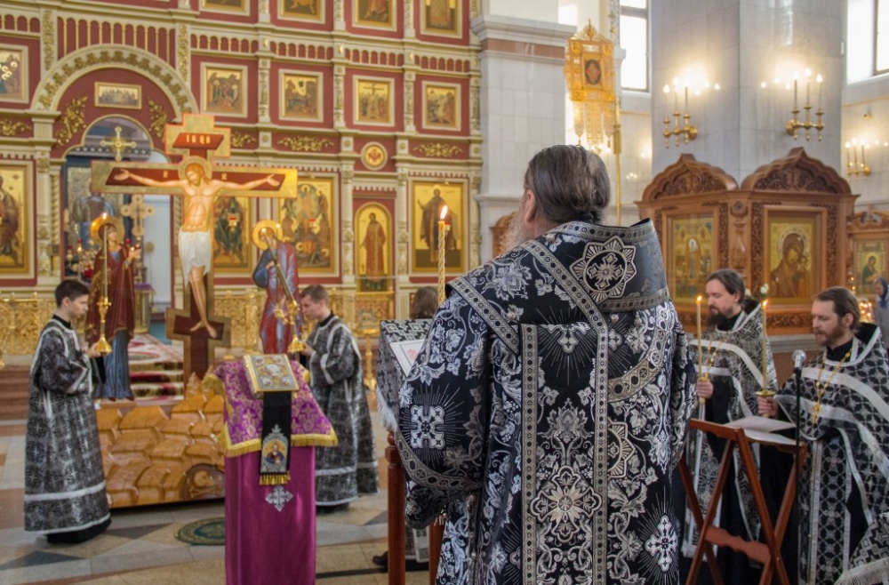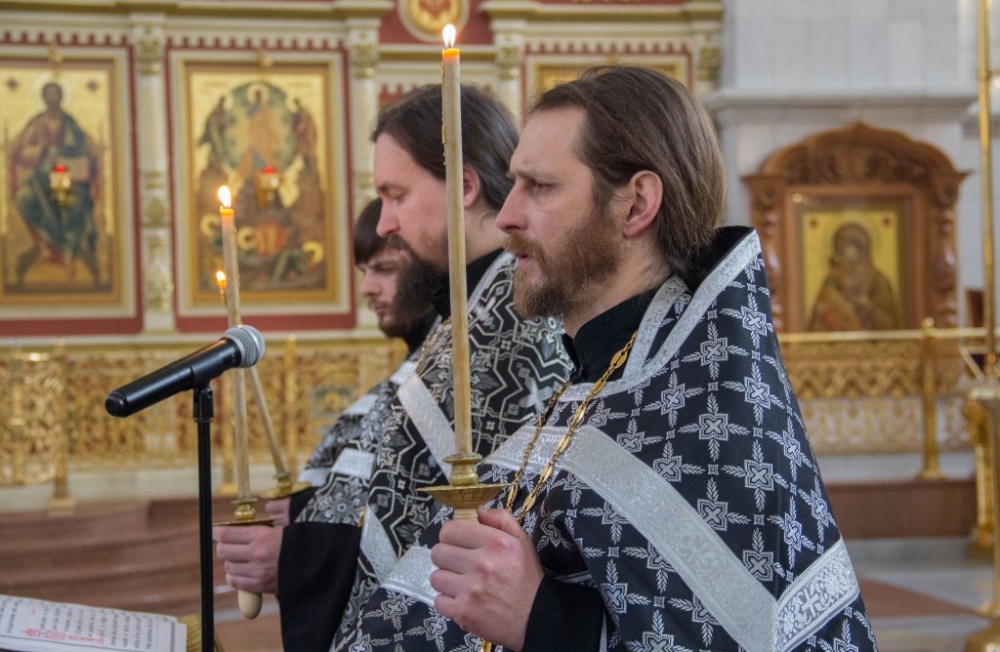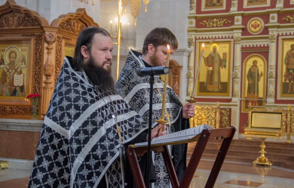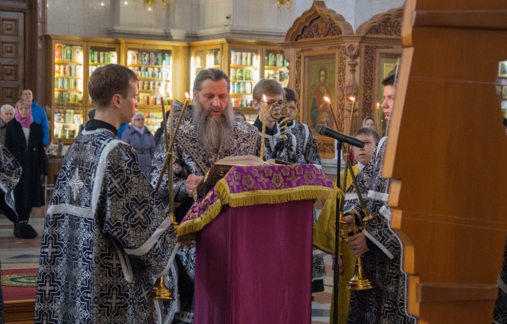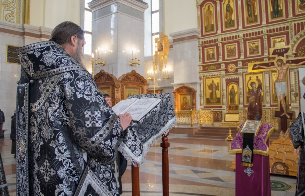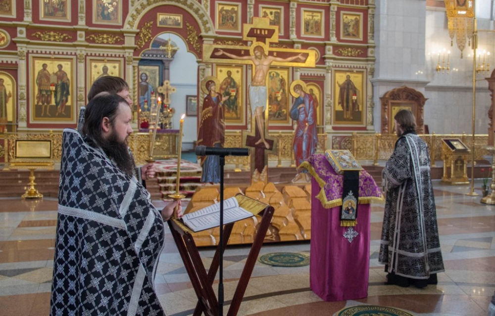 Чинопоследование с чтением акафиста Страстям Христовым в Спасо-Преображенском кафедральном соборе 24 марта 2019 г.